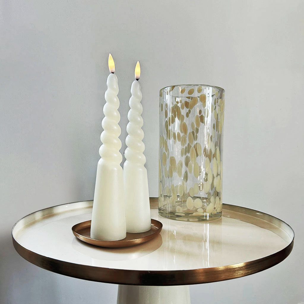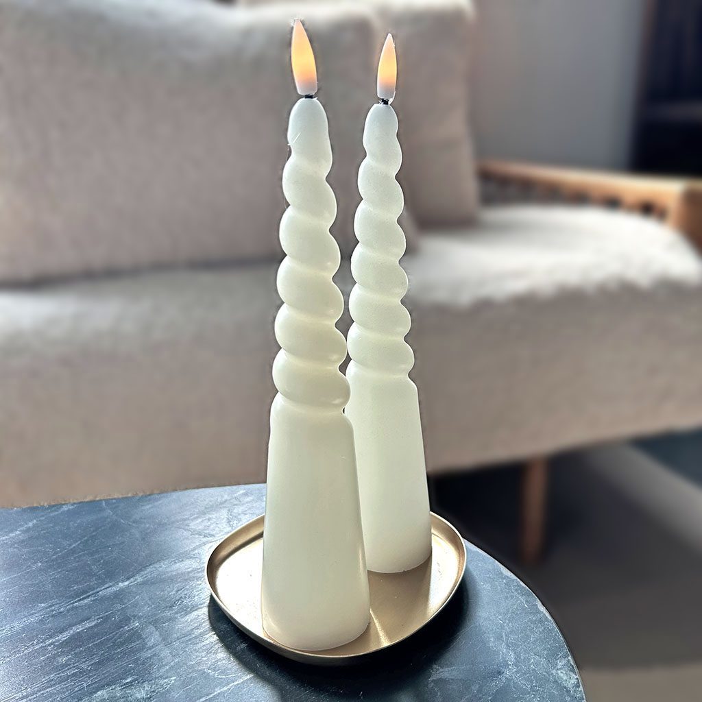 Lot de 2 bougies LED torsadée sur pilier de couleur blanc, parfaitement pour chaque intérieur.